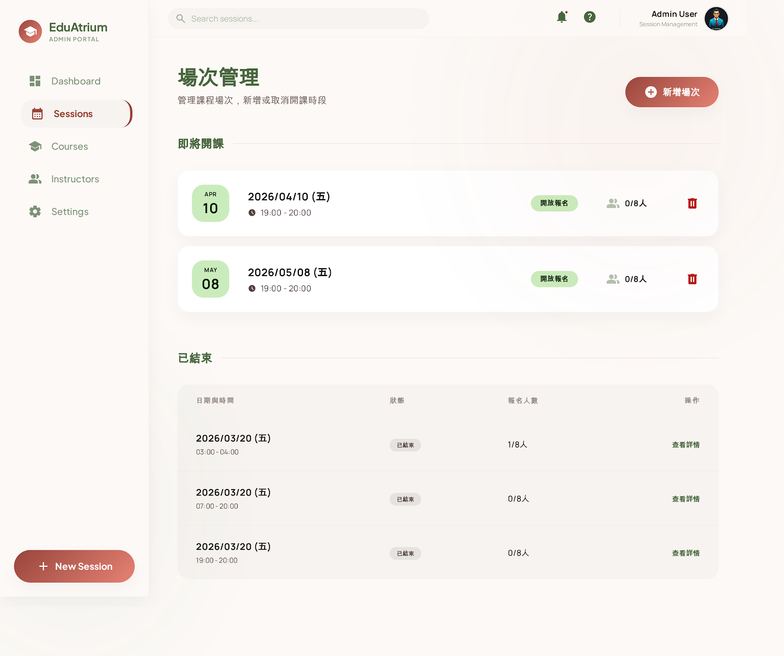 返回課程列表